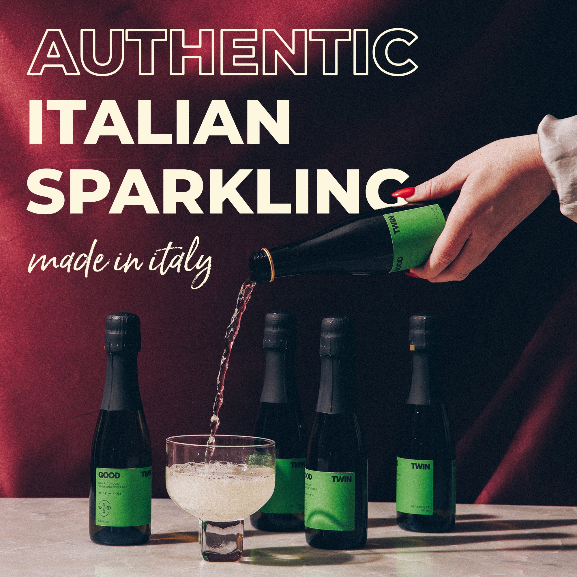Good Twin is so enchanting, you’ll swear it’s the real thing. Made from real organic wine grapes in Italy, it captures all the flavor, sparkle, and sophistication of its alcoholic twin—without the buzz. Perfect for any occasion, it’s a sip of everyday magic.