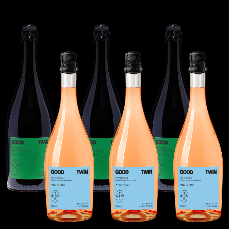 Celebrate with the perfect pair! This exclusive pack features our crisp Good Twin Rosé and refreshing Sparkling Blanc—two non-alc favorites made for any moment. Twice the flavor, double the joy.